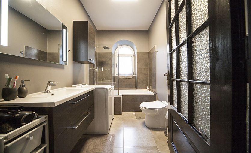 Fil d'Ariane :Accueil › Réalisations › Réalisations de salle de bain › Réfection de salle de bain Réfection de salle de bain RE’NEUV intervient pour la rénovation de salle de bain. Pour la plupart des ménages, la réfection de salle de bain est le premier lot de travaux effectué lors d’un achat immobilier. Cette salle de bain rénovée est spacieuse et fonctionnelle. Elle comprend une baignoire, un WC et un lave-linge ! Vous êtes intéressé par nos services ? Obtenez un retour sous 48h Demandez un devis